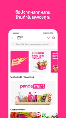 ดื่มด่ำกับรสชาติที่คุณปรารถนา ไม่ว่าจะเป็นพิซซ่าเตาถ่านหอมกรุ่น เบอร์เกอร์ฉ่ำเนื้อ หรือไก่ทอดกรอบอร่อย foodpanda คัดสรรร้านอาหารชั้นนำและร้านเด็ดประจำซอยมาให้คุณเลือกสรร พร้อมมอบส่วนลดและโปรโมชั่นสุดคุ้มค่า นอกจากนี้ pandamart และ shops จาก foodpanda ยังเป็นแหล่งรวมสินค้าหลากหลาย ตั้งแต่ของสดคุณภาพดี ขนม เครื่องดื่ม อาหารแช่แข็ง ไปจนถึงของใช้ส่วนตัวและอาหารสำหรับสัตว์เลี้ยง ให้คุณหมดกังวลเรื่องการเดินทางและหิ้วของหนักอีกต่อไป