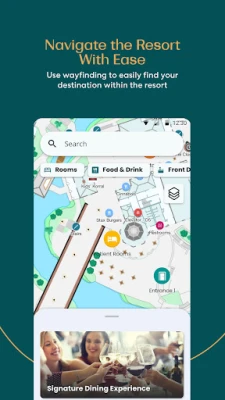 ค้นหาห้องพัก การประชุม และสิ่งอำนวยความสะดวกในรีสอร์ทได้อย่างง่ายดาย ด้วยการนำทางทีละขั้นตอน แอพนี้คือจุดบริการครบวงจรสำหรับทุกความต้องการของคุณ ทำให้การเข้าพักสะดวกสบายและไร้กังวล