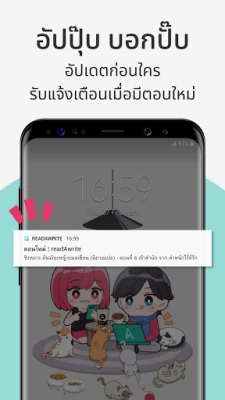 สัมผัสประสบการณ์ใหม่กับ "readAchat" ฟีเจอร์นิยายแชทสุดล้ำ ที่เปิดโอกาสให้นักเขียนรังสรรค์เรื่องราวในรูปแบบการสนทนาได้อย่างง่ายดายผ่านแอปพลิเคชันหรือคอมพิวเตอร์ ส่วนนักอ่านก็สามารถดื่มด่ำไปกับเรื่องเล่าที่เคลื่อนไหวมีชีวิตชีวา นอกจากนี้ "readAwrite" ยังเข้าใจความต้องการของผู้ใช้งานอย่างลึกซึ้ง ด้วยระบบค้นหาอัจฉริยะที่ช่วยให้คุณเข้าถึงเรื่องราวที่ต้องการได้อย่างรวดเร็ว พร้อมฟังก์ชันโดเนทไอเทมสุดพิเศษ ไม่ว่าจะเป็นชานมไข่มุก พิซซ่า หรือซาชิมิ เพื่อส่งกำลังใจและคำขอบคุณถึงนักเขียนคนโปรดโดยตรง หรือการให้ทิปที่เปรียบเสมือนคำชื่นชมอันล้ำค่า ยกระดับการปฏิสัมพันธ์ด้วยสติกเกอร์เฉพาะตัวจาก พี่รี๊ด น้องไร้ต์ พี่ meb และพี่ฮิปโป ที่พร้อมเติมสีสันให้ทุกคอมเมนต์ ไม่ว่าจะอ่านในสภาพแสงแบบไหน ก็สามารถปรับหน้าจอได้ถึง 4 โหมด ทั้งปกติ ซีเปีย กลางคืน หรือโหมดมืด พร้อมปรับขนาดและจัดวางฟอนต์ตามความถนัด ทำให้ทุกการอ่านเป็นประสบการณ์ส่วนตัวอย่างแท้จริง