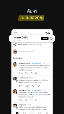 ดำดิ่งสู่บทสนทนาที่น่าสนใจที่สุด ตอบกลับ แสดงความรู้สึก และดื่มด่ำไปกับอารมณ์ขันและมุมมองอันลึกซึ้งจากผู้คนทั่วโลก ค้นพบกลุ่มชุมชนที่สอดคล้องกับจิตวิญญาณของคุณ และสร้างมิตรภาพใหม่ๆ กับผู้ที่มีใจเดียวกัน นอกจากนี้ Threads ยังเป็นแหล่งรวมข้อมูลและแรงบันดาลใจชั้นยอด ไม่ว่าจะเป็นคำตอบสำหรับข้อสงสัย หรือการเรียนรู้สิ่งใหม่ๆ จากผู้เชี่ยวชาญและผู้นำทางความคิดในทุกสาขาอาชีพ เพื่อให้คุณไม่พลาดทุกกระแสสำคัญ รับการแจ้งเตือนทันทีเมื่อโปรไฟล์ที่คุณชื่นชอบเริ่มเธรดใหม่ และเข้าร่วมกิจกรรมสดได้ทุกเมื่อ