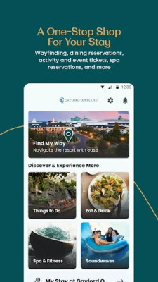 สัมผัสความหรูหราของการบริการที่ปรับแต่งมาเพื่อคุณโดยเฉพาะ ด้วยแอป Gaylord Hotels คุณสามารถสำรวจและจองโต๊ะอาหารค่ำ ณ ห้องอาหารชั้นนำภายในรีสอร์ท ซื้อบัตรเข้าชมกิจกรรมและความบันเทิงที่น่าตื่นเต้น หรือแม้กระทั่งสำรองเวลาเพื่อปรนนิบัติร่างกายและจิตใจที่สปาสุดพิเศษได้อย่างง่ายดาย ไม่ต้องเสียเวลาต่อคิวหรือค้นหาข้อมูลอีกต่อไป ทุกสิ่งที่คุณต้องการเพื่อเติมเต็มช่วงเวลาแห่งความสุข พร้อมให้คุณจัดการได้ทันทีจากอุปกรณ์ของคุณ