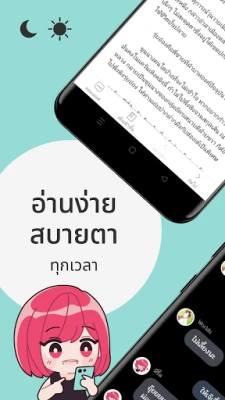สัมผัสประสบการณ์ใหม่กับ "readAchat" ฟีเจอร์นิยายแชทสุดล้ำ ที่เปิดโอกาสให้นักเขียนรังสรรค์เรื่องราวในรูปแบบการสนทนาได้อย่างง่ายดายผ่านแอปพลิเคชันหรือคอมพิวเตอร์ ส่วนนักอ่านก็สามารถดื่มด่ำไปกับเรื่องเล่าที่เคลื่อนไหวมีชีวิตชีวา นอกจากนี้ "readAwrite" ยังเข้าใจความต้องการของผู้ใช้งานอย่างลึกซึ้ง ด้วยระบบค้นหาอัจฉริยะที่ช่วยให้คุณเข้าถึงเรื่องราวที่ต้องการได้อย่างรวดเร็ว พร้อมฟังก์ชันโดเนทไอเทมสุดพิเศษ ไม่ว่าจะเป็นชานมไข่มุก พิซซ่า หรือซาชิมิ เพื่อส่งกำลังใจและคำขอบคุณถึงนักเขียนคนโปรดโดยตรง หรือการให้ทิปที่เปรียบเสมือนคำชื่นชมอันล้ำค่า ยกระดับการปฏิสัมพันธ์ด้วยสติกเกอร์เฉพาะตัวจาก พี่รี๊ด น้องไร้ต์ พี่ meb และพี่ฮิปโป ที่พร้อมเติมสีสันให้ทุกคอมเมนต์ ไม่ว่าจะอ่านในสภาพแสงแบบไหน ก็สามารถปรับหน้าจอได้ถึง 4 โหมด ทั้งปกติ ซีเปีย กลางคืน หรือโหมดมืด พร้อมปรับขนาดและจัดวางฟอนต์ตามความถนัด ทำให้ทุกการอ่านเป็นประสบการณ์ส่วนตัวอย่างแท้จริง